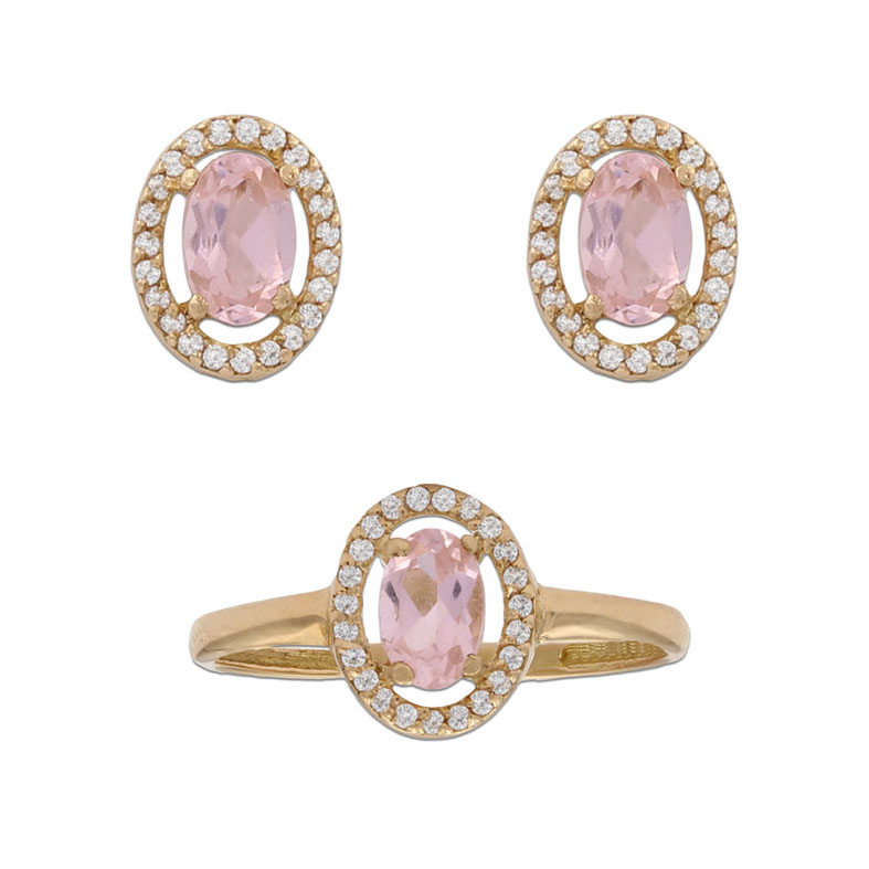 Pendientes en Oro de 18 Kl. con piedras nano morganita y circonitas.