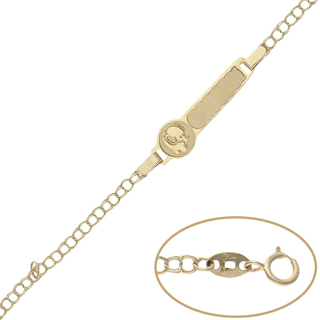 Pulsera con elefante en Oro de 18 Kl. con eslabón húngaro. Placa mate y brillo. Ancho de placa: 5mm.