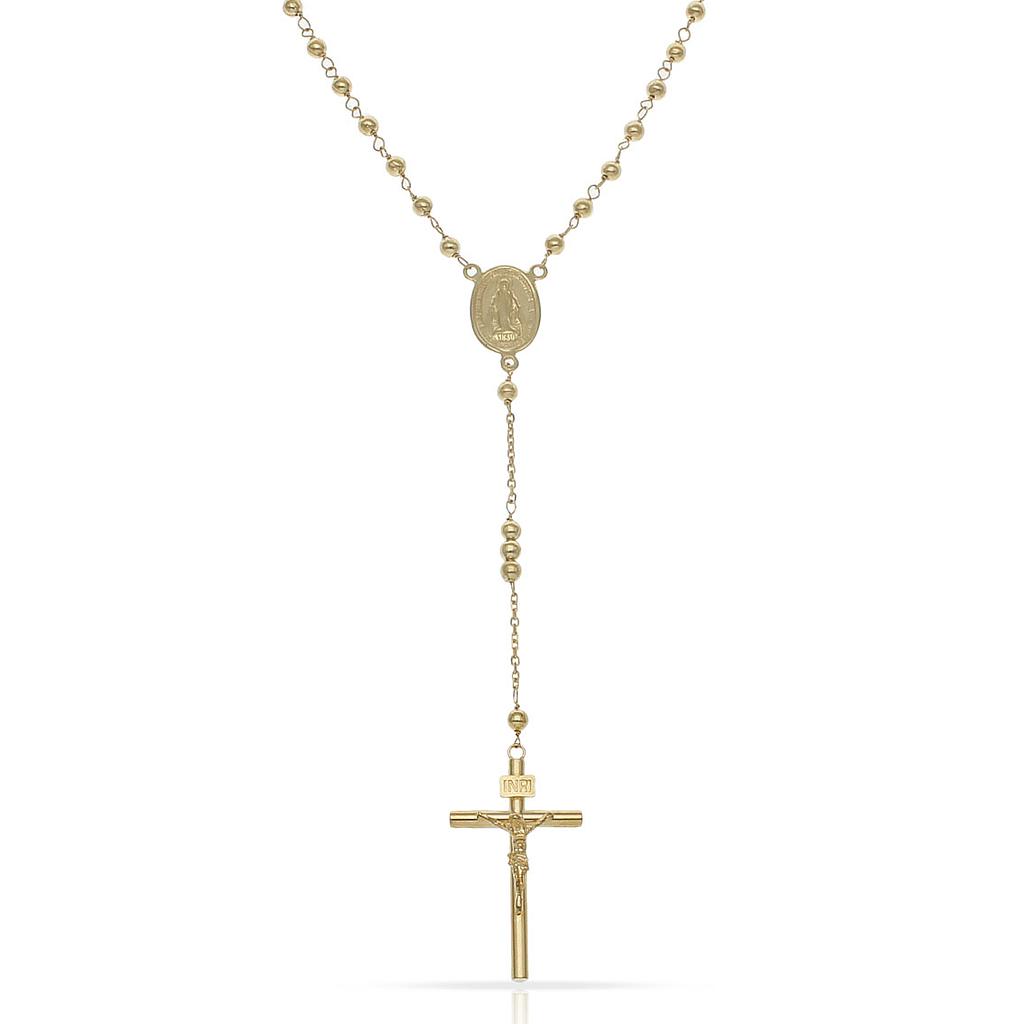 Rosario en Oro de 18 Kl. con la Virgen Milagrosa y cruz con cristo. Bolas de 3mm.