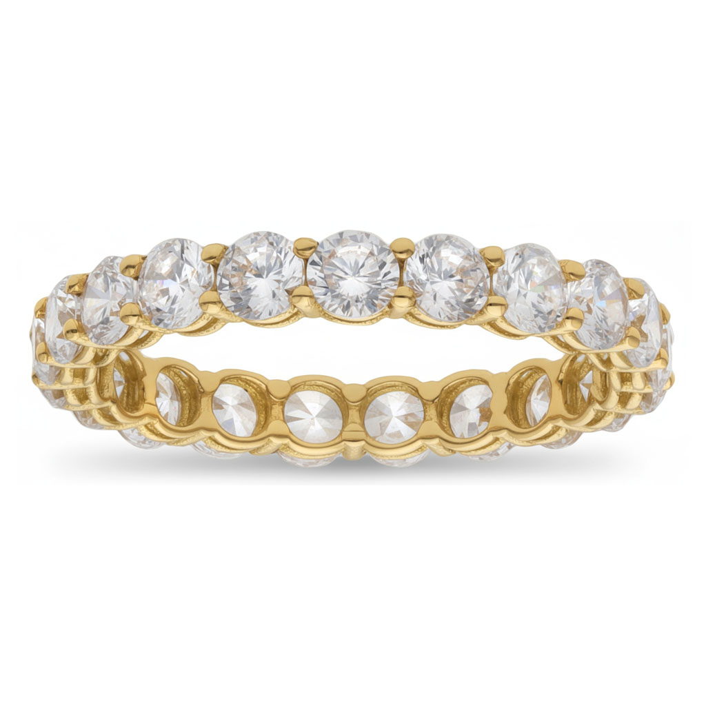 Sortija infinity en Oro de 18 Kl. con aro completo engastado en circonitas.