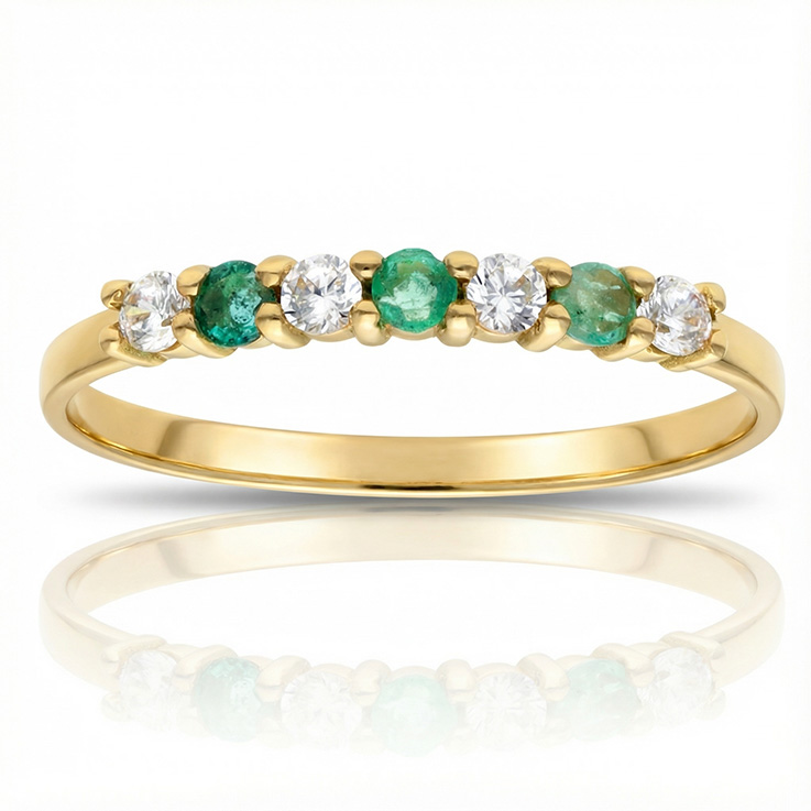 SORTIJA ORO 18KL 3 ESMERALDAS FINAS + CIRCONITAS