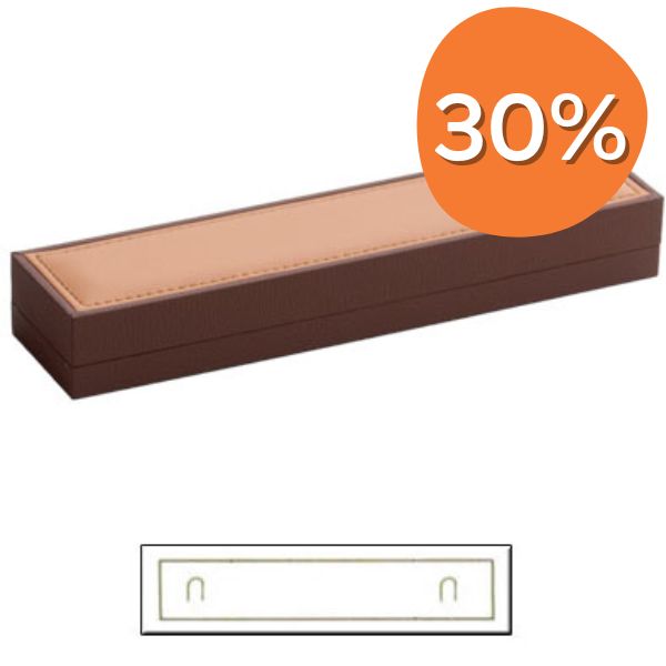 Color marrón y marrón chocolate. Interior en color blanco. Material del estuche: polipiel.